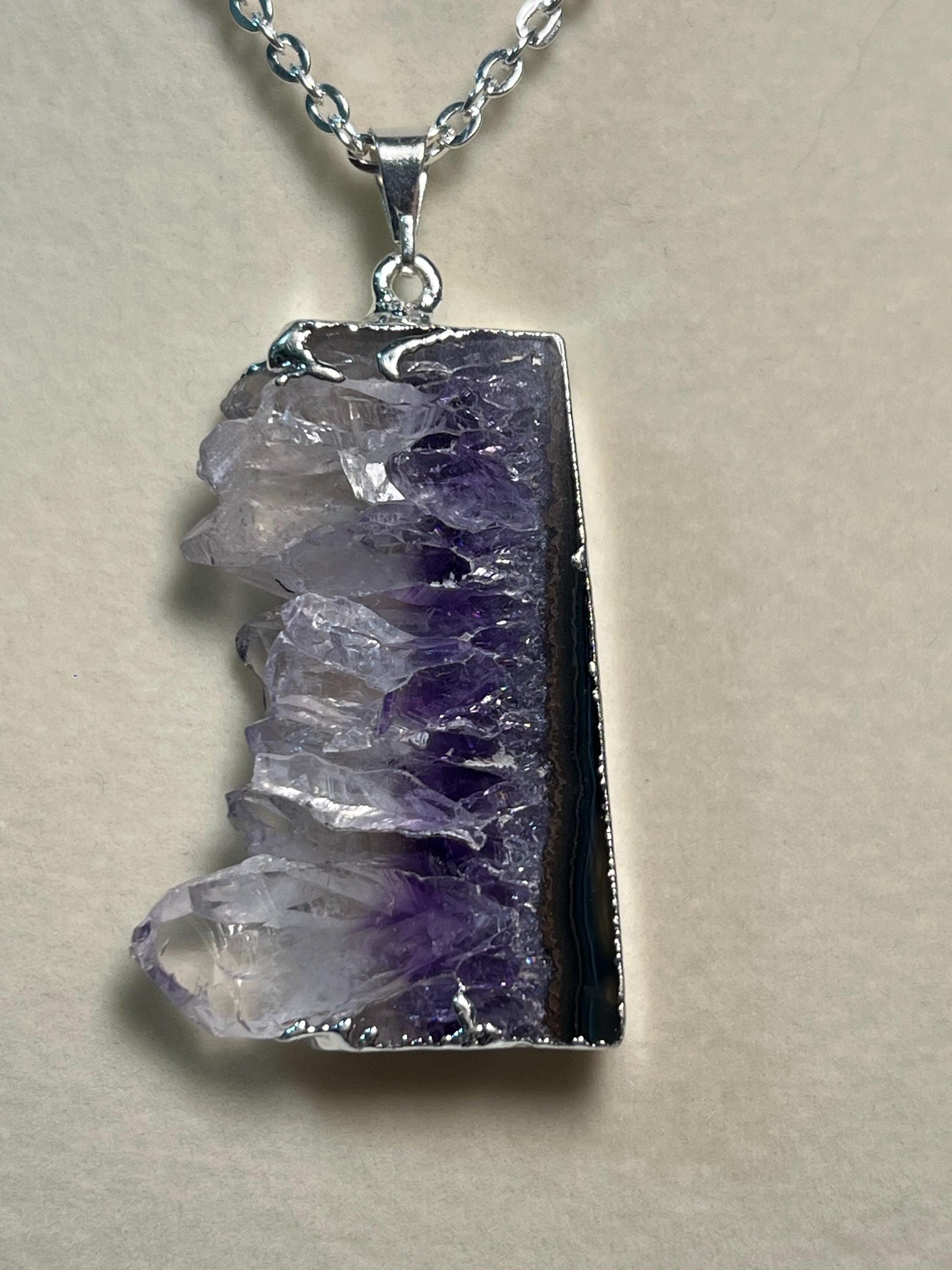Beautiful Amethyst slice necklace, raw edge crystal pendant from Brazil