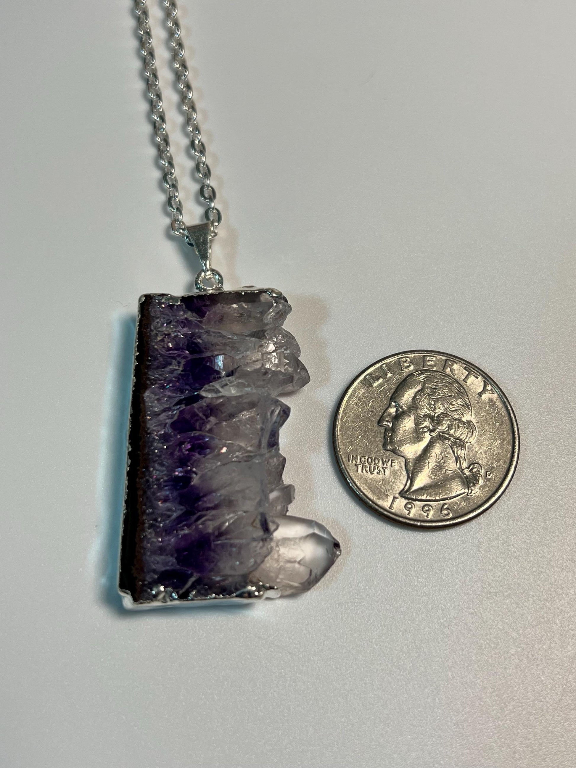 Silver Amethyst Necklace, Amethyst Stalactite, Silver Amethyst Pendant, Amethyst Jewelry