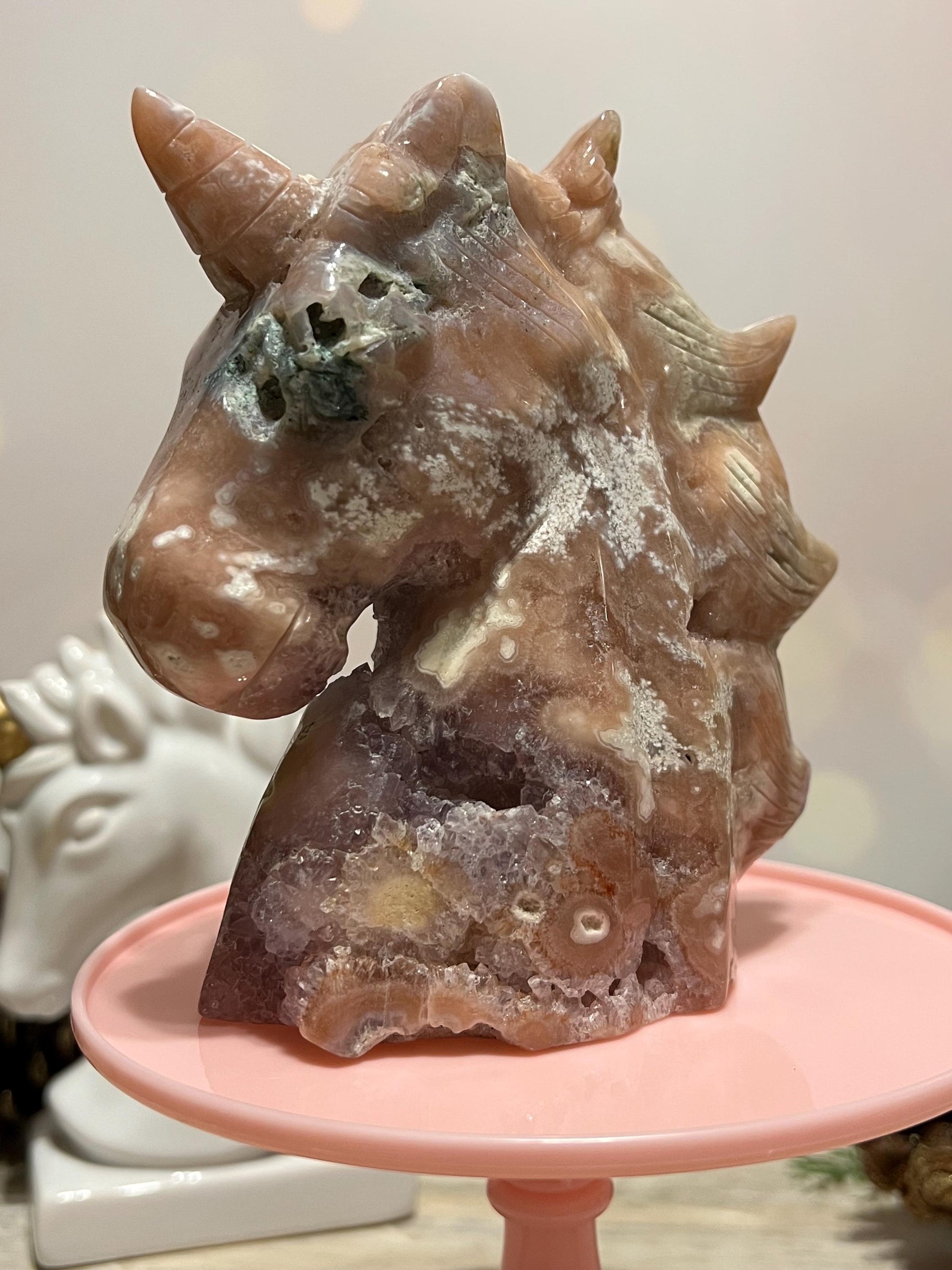 Beautiful Pink Amethyst and Flower Agate unicorn