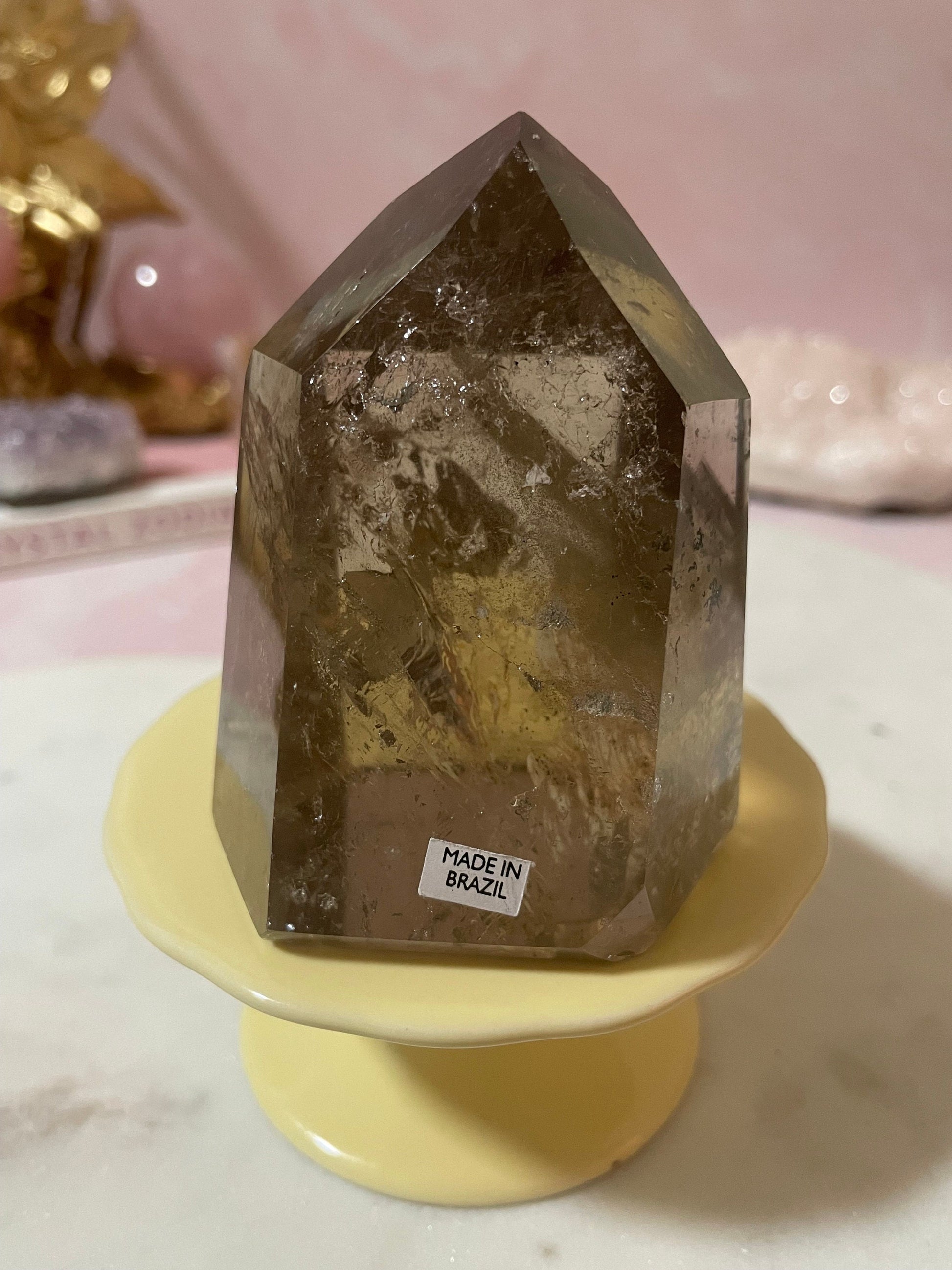 Smoky quartz is a type of quartz crystal known for its dark, smoky appearance. It ranges in color from light to dark brown and even black.