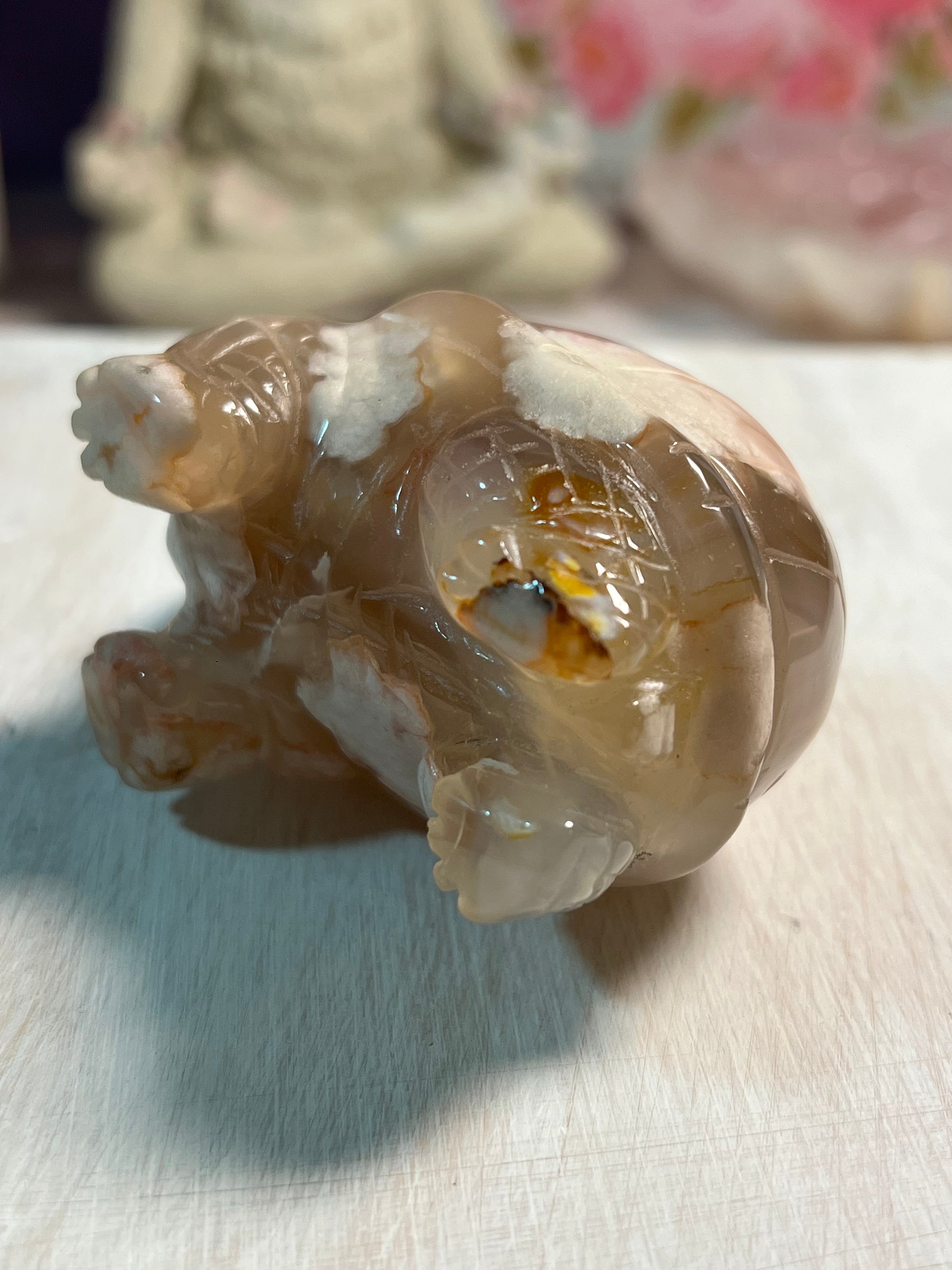 This charming flower agate turtle carving brings a splash of nature’s joy to any space. Smooth and colorful, each stone’s unique floral patterns make every turtle a one-of-a-kind companion. Perfect for sparking smiles and adding a playful touch to your decor or crystal collection.